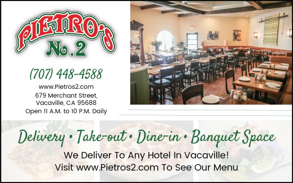 Pietro's no. 2 restaurant in Vacaville has been in business since 1968. Taste the difference! They offer pizza and fine dining to anyone with taste buds! Everything on the menu is available to go, or you can eat in the comfortable dining area. If you're looking for that traditional Italian flavor, you need to come try Pietro's. The food is delicious! Ask for the Fettuccine Alfredo - a local favorite! Enjoy patio dining with their new patio expansion, banquet rooms that serve up to 100 people, take out and home delivery!