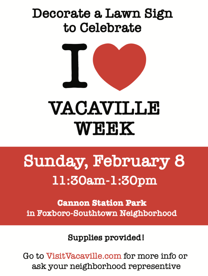 Get ready to kick off I <3 Vacaville Week with some local flair! Join us for a fun, creative morning at Cannon Station Park as we gear up for a week-long celebration of everything that makes our city great.