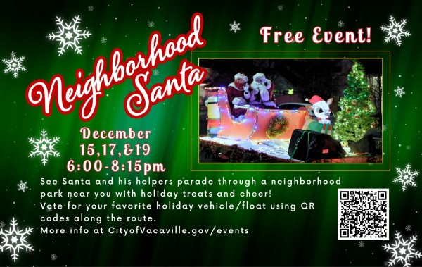 Neighborhood Santa is bringing holiday cheer to 15 Vacaville neighborhood parks!